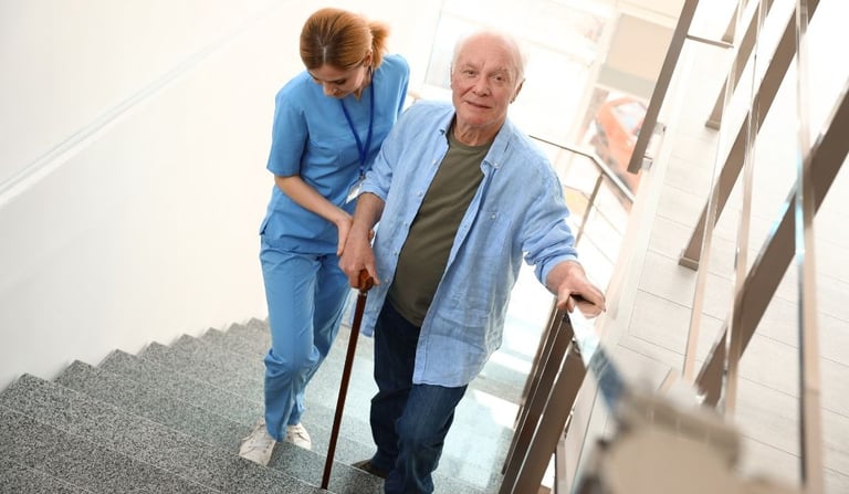 Tailored exercises and equipment guidance for safe movement at home or in a care home.